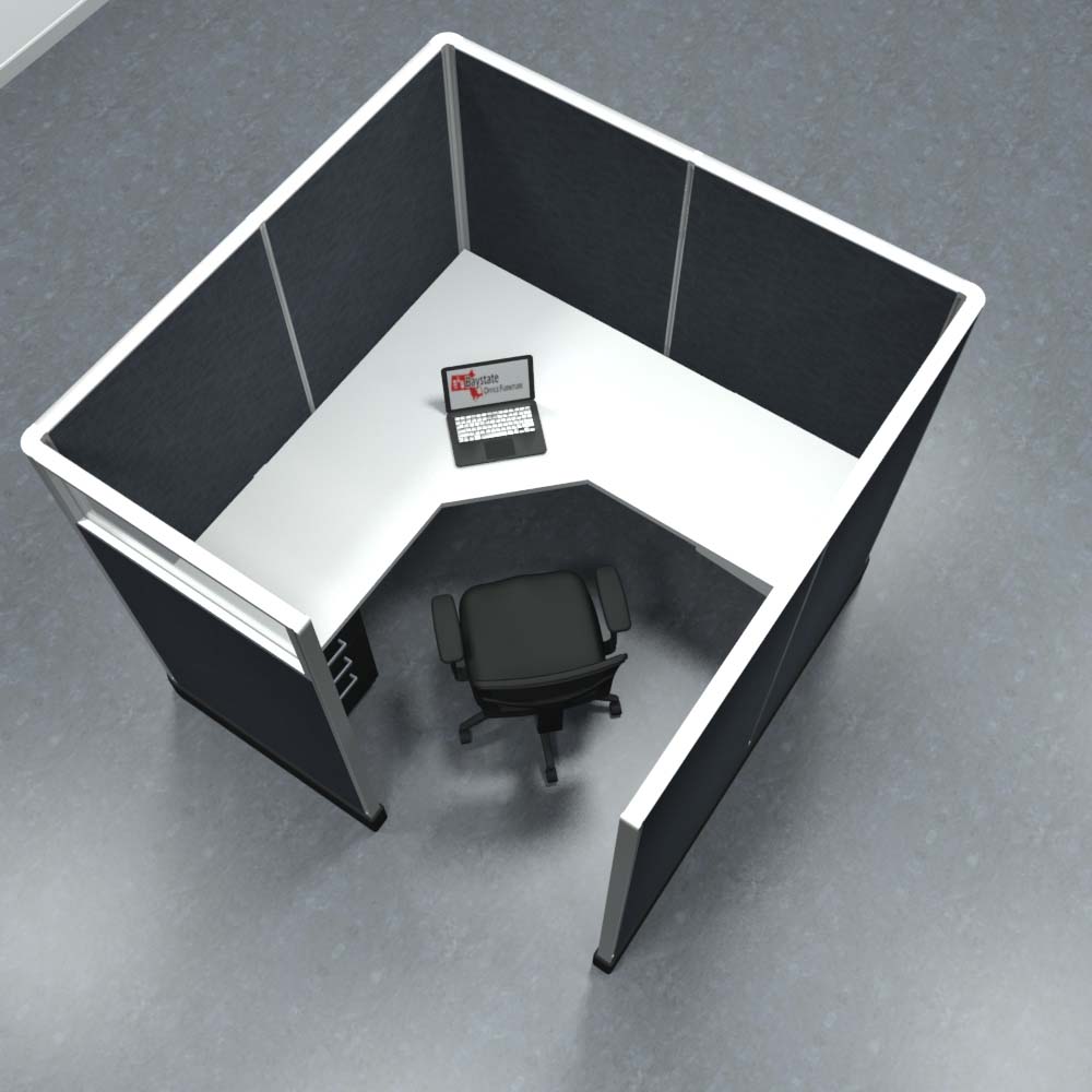 Maximize productivity and comfort with this 6×7 office cubicle workstation, built with 53-inch-high panels to balance privacy and collaboration. The larger 6×7 footprint offers extra desk space, making it ideal for multi-monitor setups, paperwork, and storage accessories. Sturdy sound-dampening panels help minimize distractions, while the corner desk design keeps your workflow organized and efficient. Choose from three stylish configurations – all-fabric panels for full privacy, one glass panel to brighten the space, or two or three glass panels for a more open feel. This workstation pairs durability with modern design, complete with a cable-friendly desk layout.