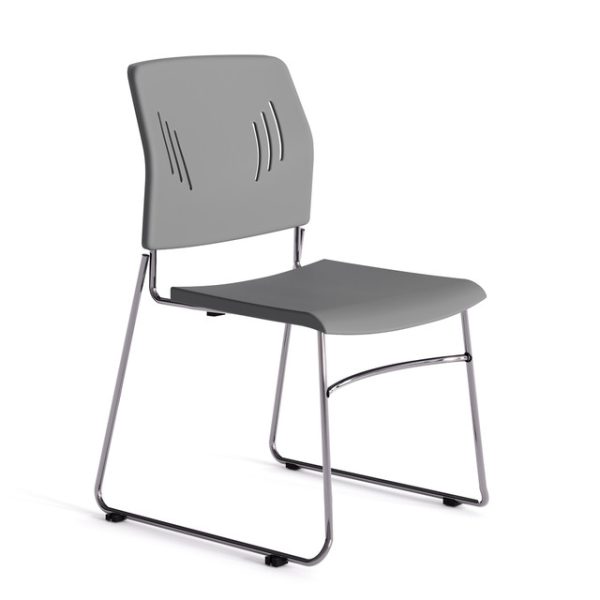 Armless stacking chair with chrome frame.  Available in black, grey, navy blue and white.