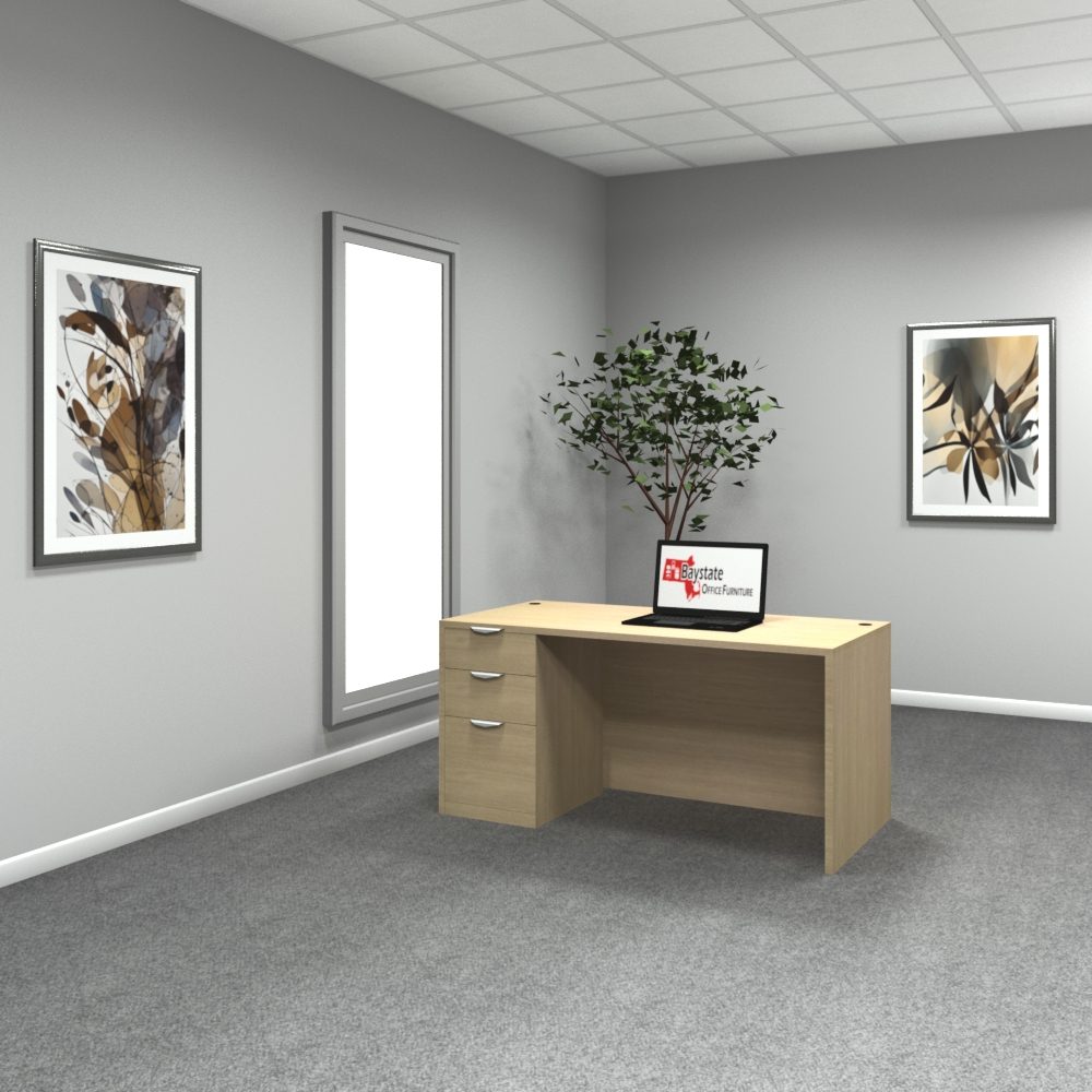 The 72” x 108” Rectangular L Desk in Maple offers an expansive work surface with the added benefit of integrated storage. Designed for functionality and organization, this desk comes with 9 stocked colors and includes a locking box/box/file pedestal for supplies and personal items, plus a 2-drawer lateral file cabinet for larger documents. An open hutch above the lateral file provides shelving for books, binders, or display items, keeping essentials within reach. Cable management grommets ensure a tidy workspace, while the full modesty panel provides both privacy and durability.