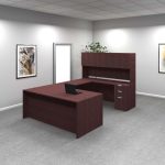 - Features: U-shaped design, secure pedestal storage, expansive work surface, cable management grommets, full modesty panel, durable laminate construction